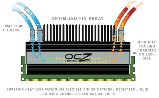 Firma OCZ ma coś dla tych, którzy potrzebują zarówno dużej ilości, jak i szybkiej pamięci. OCZ Flex II XLC PC2-9200 sprzedawane będzie w zestawach Dual Kit po dwa 2 gigabajtowe moduły. Każdy z nich pracuje z prędkością efektywną 1150 MHz przy ustawieniu timingów na poziomie CL5-5-5-18 i napięciu zasilania 2.1V. Uwagę zwraca system chłodzenia Flex II XLC (Xtreme Liquid Convention), który może pracować zarówno przy chłodzeniu powietrzem, jak i za pomocą systemu wodnego. W odróżnieniu od pierwszej wersji XLC, blok wodny "dwójki" składa się z dwóch osobnych elementów (każdy chłodzi swoją stronę kostek pamięci) oraz zastosowano w nim więcej miedzianych elementów, co pozwoli bardziej "poszaleć" miłośnikom overclockingu. Ceny jeszcze nie zdradzono, ale wiadomo, że moduły te już niebawem powinny trafić do sklepów.