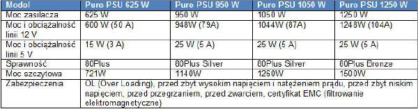Dla segmentu mainstream został przeznaczony, znany już wcześniej pod nazwą FirePSU 625W, zasilacz PURE 625W. Jego moc wystarcza do zasilenia wydajnego komputera wyposażonego nawet w więcej niż jedną kartę graficzną, a certyfikat 80Plus świadczy o jego dużej sprawności.