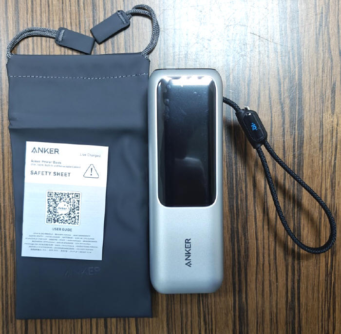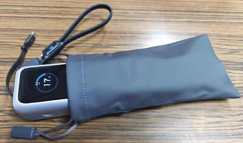 W pudełku prócz kodu QR odnoszącego nas do instrukcji obsługi, znajdziemy tylko... pokrowiec ochronny do transportu. Tylko i AŻ TYLE, bo to rzecz brakująca, na którą zwracałem uwagę przy testach konkurencyjnych powerbank’ów Baseus’a, zwłaszcza modelu Amblight 30000, który brał ze mną udział w motocyklowej podróży na Korsykę i jego lekko błyszcząca obudowa dość mocno ucierpiała podczas 6000 kilometrów europejskich traktów o różnej nawierzchni. Tutaj ANKER daje nam pokrowiec w standardzie i na pewno przyda się on, chroniąc czarną (piano), osłonę kolorowego wyświetlacza i lakierowanego na srebrno (do wyboru jest jeszcze wersja grafitowa), plastikowego korpusu. Mała rzecz, a cieszy!