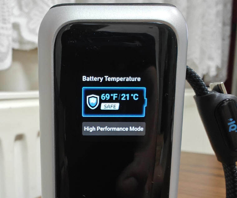 Kolejne przyciśnięcie bocznego kontrolera przełączy nas na okno kontroli temperatur pracy ogniw, a jeszcze następne wejdzie w tryb testu ich stanu kondycyjnego oraz ilości wykonanych cykli ładowania.