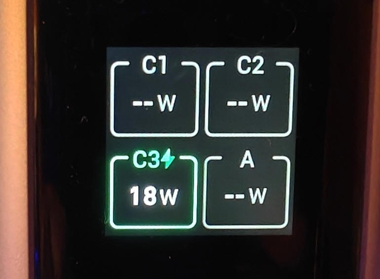 Nie posiadam niestety nic do ładowania, co pozwoliłoby bardziej obciążyć poszczególne porty tego urządzenia i trzeba będzie pomyśleć o zakupie jakiegoś dedykowanego testera, choć z tym również bywa różnie, bo gdzieś w sieci znalazłem opinie, że złącza te nie obsługują technologii szybkiego ładowania SuperVOOC, a u mnie w telefonie niby się ona melduje, choć działa z dość ograniczoną mocą. Recenzenci zwracają też uwagę, że zbliżanie się do maksymalnego obciążenia ładowania, czyli 100W, dość szybko kończy się (po około 11 minutach, zależnie od temperatury i wentylacji pomieszczenia), redukcją oddanej mocy do max około 50 Watów. Tyle dobrze, że oznacza to prawidłowe działanie systemu zabezpieczeń ogniw, ale przedłuży nasz proces przekazania energii. Po intensywnym użytkowaniu może się też zdarzyć, że po podłączeniu ładowarki na ekranie zobaczymy czerwony komunikat o konieczności wychłodzenia ogniw przed kolejnym cyklem doładowania. Jak wspominałem, mi przy normalnym, codziennym użytkowaniu, jego temperatura nie przekroczyła 36 stopni, a wtedy nic złego nie pojawi się nam na ekranie.