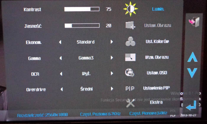 Dalsze okna Menu pozwolą nam zapanować nad ustawieniami wyświetlanego obrazu. W modelu AOC Q2963PM otrzymamy również obsługę technologii PIP, czyli obrazu w obrazie, co przy takiej powierzchni roboczej nie może dziwić.