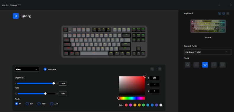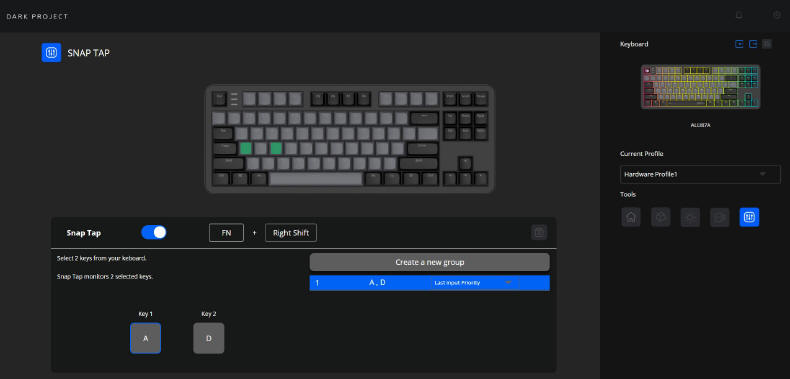Za pomocą tego programu możemy sterować zarówno klawiaturą, jak i myszami od DARK PROJECT. Całość jest dość intuicyjna i w zasadzie nie przeszkadza brak języka polskiego.