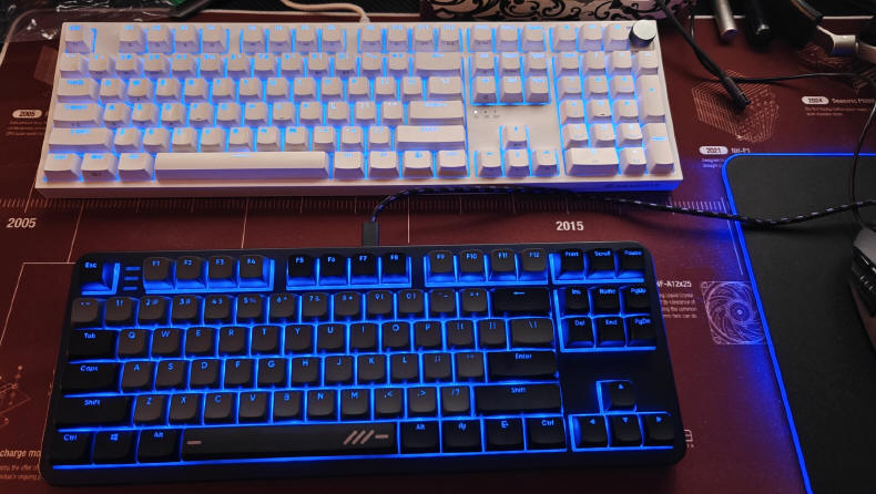 Czy ALU87A ONIONITE V2 ma jakieś słabsze strony? Na czas mojej znajomości z tym modelem, w zasadzie najbardziej przeszkadzało mi słabe pochylenie klawiatury, którego nie mogłem zwiększyć bez systemu rozkładanych nóżek, znanych z większości konkurencji na rynku. Prócz dziwnego "klapania" spacji, która wyróżnia się w tle miłego mlaskania pozostałych klawiszy (myślę, że to raczej nie problem, bo czym dłużej na niej pisałem, mniej mnie to drażniło), to jedyne obawy co do dłuższego użytkowania tego produktu, mogę mieć do plastiku użytego do produkcji keycap’ów, bo jest to zwykły ABS, a więc przy intensywnym użytkowaniu głównych klawiszy, stałym trzymaniu na nich palców i częstym pocieraniu, z pewnością zmienią one lekko chropowatą strukturę w wypolerowaną, lekko błyszczącą powierzchnię. Lepszym materiałem byłby z pewnością PBT, ale to znów zapewne podniosłoby cenę produkcji, a w całym tym projekcie chodziło właśnie o to, by w dobrej cenie dostarczyć Nam (klientowi), jak najwięcej gamingowego sprzętu i zadowolenia z niego.