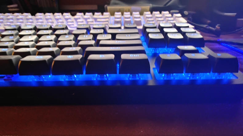 Całość świeci bardzo fajnie. To również zasługa Ziemniaka, który wziął do serca opinie użytkowników pierwszej generacji ONIONITE, którzy sygnalizowali właśnie zbyt blade świecenie poprzednich switch’y. Zmieniono zatem materiał obudowy na całkowicie przejrzysty, który znacznie lepiej rozprowadził światło z LED’ów ukrytych pod switch’ami.