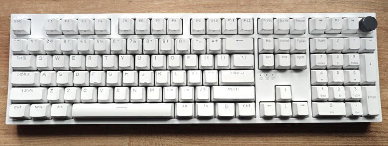 Prawda, że prócz modułu radiowego, wyposażenie jest trochę podobne do produktu Genesis, jednak tam mieliśmy switch’e Gateron Yellow Pro, a tutaj dostajemy ENDORFY Yellow by Gateron, czyli w zasadzie ten sam produkt, ale jednak bez dodatku PRO w nazwie. Czy ma to jakieś znaczenie? Tego dowiecie się w części poświęconej testom, a my przejdźmy teraz do wyglądu samej klawiatury Thock V2 Wireless. Wspominałem wcześniej, że obie konstrukcje (które jestem w stanie na chwilę obecną porównać teraz), na pierwszy rzut oka mogą wydać się dość podobne, ale to chyba głównie dzięki użyciu w nich pokrętła w górnym, prawym narożniku, bo różni je nieco układ klawiszy funkcyjnych.