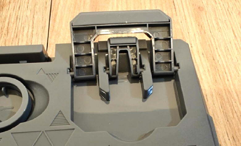 Kiedy odwrócimy kadłubek Thock’a V2, może się nam trochę zakręcić w głowie od ilości odbić światła w kilkudziesięciu trójkątach, ale szybko naszą uwagę zwróci dedykowany schowek na nadajnik radiowy i klucz do demontażu czapek klawiszy. Zwróćcie również uwagę na niezwykle duże, masywne, rozkładane stopki ustawiające większe pochylenie klawiatury. Druga, mniejsza para ukryta jest we wnętrzu tych dużych.
