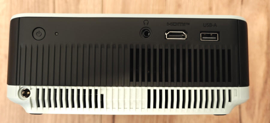 "Kostka przezentuje się naprawdę ładnie, a biel górnej i dolnej pokrywy świetnie kontrastuje z czarną obwolutą boczków. Fa frontowej ścianie znajdziemy obiektyw, sensory IR do pilota i skaner pełniący funkcję wyostrzania obrazu i czujnika "czystego pola" oraz dumnie brzmiący napis Sound by BOSE. Lewa strona (patrząc od frontu), to system wylotowy chłodzenia, w którym umieszczono też jeden z głośników, natomiast po prawej mamy już tylko "siatkę" przykrywającą dalszą część nagłośnienia (2 x 5W).