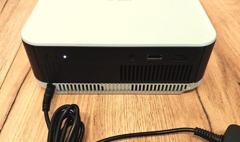dzień w telefonie i na komputerze. Wpierw wciskamy przycisk Power, przy którym zaczyna migać biała dioda LED, pokazując nam wstępny proces rozgrzewania urządzenia. Po kilkunastu sekundach obiektyw rozjaśnia się światłem i pokazuje nam kolejne etapy postępowania.