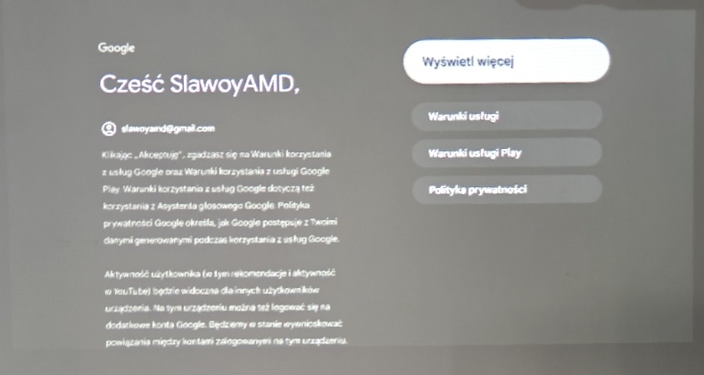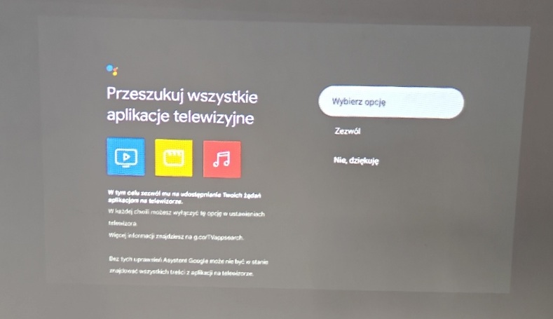 Aby cieszyć się oglądaniem filmów w dużym formacie, wpierw trzeba się trochę nagimnastykować z przejściem fazy rejestracji i wstępnego ustawienia projektora. Niestety nie można tego ominąć i trzeba podać trochę danych o sobie rejestrując się przez nasze konto Google. W zamian dostajemy wszystkie opcje i aplikacje, z których korzystamy na co
