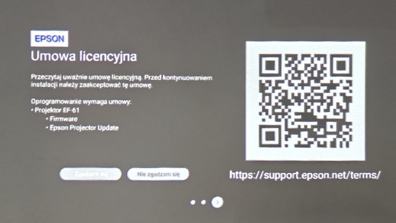 Całość rejestracji i wstępnych ustawień kończymy zgodą na postanowienia Umowy Licencyjnej i w ten sposób jesteśmy już o krok od używania projektora.