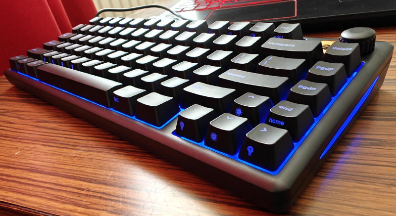 Na zdjęciach intensywność podświetlenia klawiszy, wydaje się zbyt intensywna, ale to tylko efekt naświetlenia w obiektywie aparatu. Naprawdę nie jest one rażące, a nawet jeśli ustawienie 100 procentowe dla kogoś będzie za mocne, może skorzystać z jego pięciostopniowej regulacji. Jak wspominałem, mleczny pasek na boku i ikonki funkcji na bokach poszczególnych klawiszy, są również podświetlone i fajnie widoczne po zmroku, czego nie ma na przykład mój mechaniczny, droższy w zakupie model Genesis THOR 404.