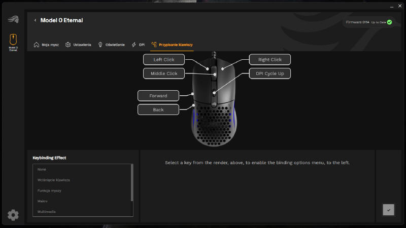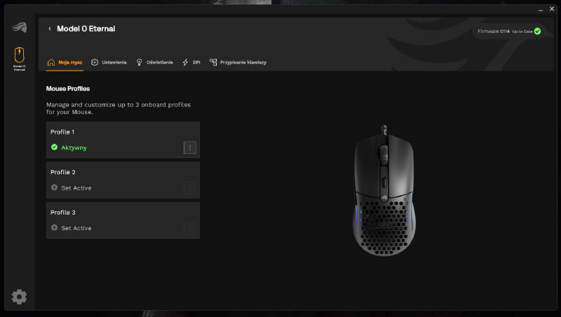 Standardowo możemy w programie zaprogramować funkcje przycisków, ustawić próbkowanie czy wartość DPI.
