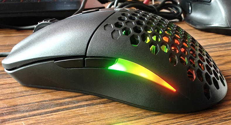 Migawka aparatu trochę wyolbrzymia ten efekt i w naturze nie jest to aż tak mocno widoczne. Za to jest to jedyna mysz w moich rękach, która może zapewnić nam całkowicie białe podświetlenie.
