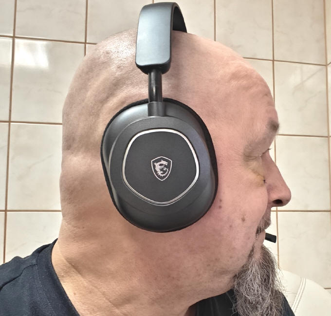 Pierwsze założenie słuchawek MSI MAESTRO 300 (OS38ZC8001000), może wiązać się z uczuciem lekkiego ściskania głowy. Pałąk jest dość sprężysty i dobrze trzyma je na głowie, ale robi to dość mocno. Jednak to pierwsze wrażenie, bo po kilkunastu godzinach ich używania, albo moja głowa przyzwyczaiła się do tej sztywności, albo same słuchawki lekko się ułożyły do niej, bo jakoś nie odczuwałem dyskomfortu przy dłuższych sesjach gry w czołgi czy słuchania muzyki. Jednak zwracam na to uwagę, bo komuś może to mocniej przeszkadzać. Za trzymanie się na głowie, jest wzorowe, nawet przy dynamicznych ruchach. Jedyne, do czego bym się przyczepił, to dość krótki kabel o długości 150 centymetrów. Jeśli macie gniazdo USB w pobliżu swojej osoby, na przykład w klawiaturze, monitorze czy stojącej na biurku obudowie, to wystarcza on zupełnie, jednak jeśli wasz komputer stoi na podłodze, a Wy zajmujecie w fotelu wygodną pozycję, może być odrobinę za bardzo ograniczający uczucie naszej swobody. Mógłby być przynajmniej o dziesięć centymetrów dłuższy.