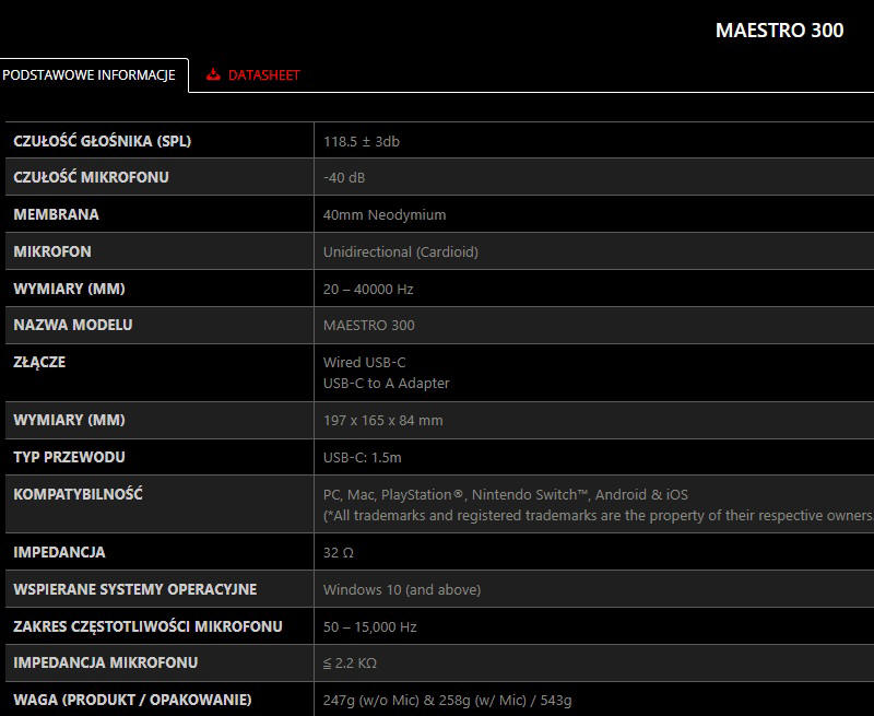 Sporym plusem modelu MAESTRO 300, jest jego szeroka kompatybilność, bo bez problemu podłączysz go do komputera Mac, konsol PlayStation, Xbox czy Nintendo Switch oraz do wielu innych urządzeń mobilnych. Z telefonem, przy braku korekcji z oprogramowania (warto wypróbować oprogramowanie w wersji na Android’a), dźwięk już nie jest tak dobry, ale za to są one dość głośne.