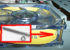 W sprawie wentylatorów Akasa należy jeszcze dodać, że dołączane do nich wkręty mocujące nie są najlepszym rozwiązaniem i mogą uszkodzić przygotowane (mniejsze) otwory w których powinny zostać umieszczone. Dlatego, aby nie uszkodzić otworów w dość kruchym tworzywie, lepiej jest wykorzystać własne śruby z nakrętkami (ja zastosowałem te widoczne na zdjęciu). Zamontowany wentylator w obudowie przytwierdzony był przez takie właśnie śruby z nakrętkami.