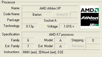 2000MHz FSB200 (400) nie odpowiada żadnemu modelowi pochodzącemu od producenta. Najbliższy wśród sprzedawanych przez AMD procesorów dla tego ustawienia to AthlonXP 2800+ Barton z FSB166 (333) i taktowaniem 2083MHz. Program NVIDIA System Utility wykrył prawidłowe ustawienie napięcia na płycie.