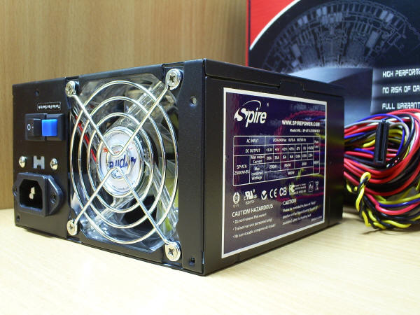 No ale dość znęcania się nad wyglądem kabli. Przejdźmy do samego zasilacza, a tutaj już nie można się w zasadzie do niczego doczepić. Blaszana obudowa pomalowana została na czarno. Sam wygląd urządzenia przywodzi na myśl skojarzenia z Taganem serii U1 z tym, że w Spire dostaniemy tylko jeden wentylator 80 x 80mm.