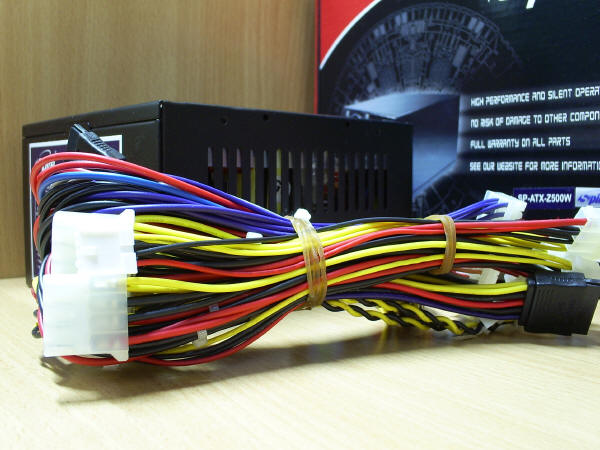 Co najmniej to dziwne, ale będę się opierał na testowym modelu. Być może firma przysłała mi wcześniejszą rewizję, zanim pojęła, że brak takiego łącza przy nowoczesnych konstrukcjach zasilaczy dużych mocy, jest niewybaczalny, zwłaszcza że deklarowana moc predysponuje produkt Spire do zasilania karty graficznej GeForce 8800GTX / GTS, gdzie potrzebujemy aż dwa wyjścia PCIexpres do ich zasilania. Buszując w Internecie, znalazłem informację, że końcówkę PCIexpres 6 pin ma rewizja 2.2, więc widocznie ja otrzymałem starsze wydanie tego zasilacza.