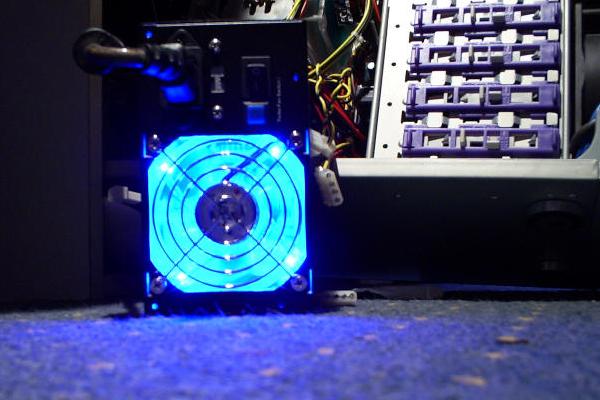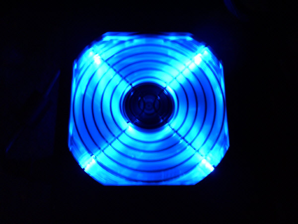 Niebiesko podświetlony wentylator może się podobać entuzjastom świecidełek w komputerze. Jego praca w prędkości nominalnej (bez włączenie trybu Turbo) jest nawet przyjemnie cicha.