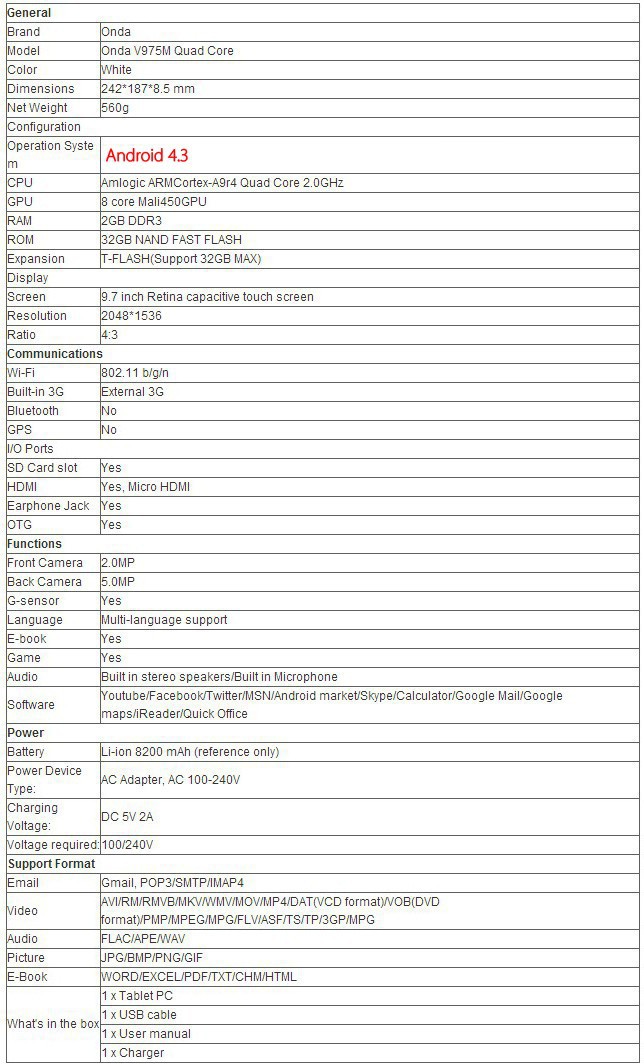 Ta tabletka jest dość dobry. Ja również znaleźć dobre oferty na geekbuying Onda V975M 2G/32G Cena $215 Darmowa wysyłka.