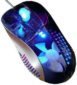 Czy znacie uczucie mokrej dłoni na myszy podczas ekscytującego momentu w grze ? Pewnie tak ... i to samo dręczyło wynalazcę tej oto myszy z wentylatorem. Wyprodukowała ją firma Logisys pod nazwą Cool Fan Mouse MS802RD. Umieszczony wewnątrz "chwytu" gryzonia wirnik zaciąga powietrze od dołu (przy okazji odkurzając podkładkę) i wyrzuca ożywczy strumień powietrza przez otwory na wysokości dłoni. Dodatkowo mysz podświetlona jest niebieskim światłem (pełne zdjęcie w dalszej części). Ceny za tą "luksusową" mysz nie podano.