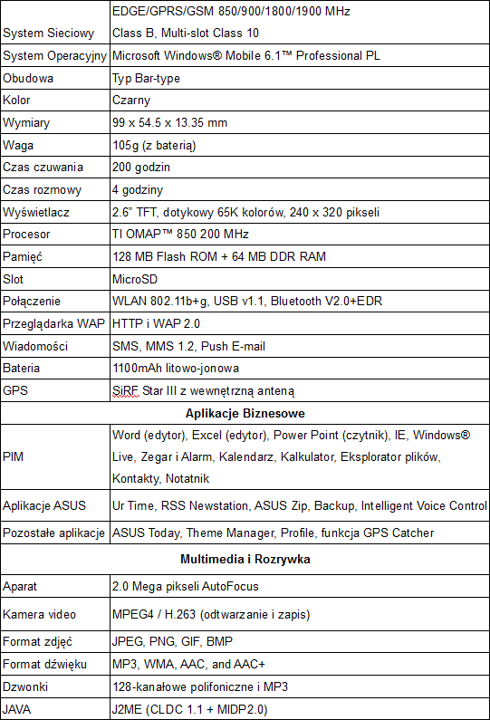 Firma ASUS znana z dbałości o design swoich produktów, po raz kolejny postanowiła zaskoczyć nie tylko znawców mody, ale przede wszystkim użytkowników. ASUS P320 to najmniejszy telefon oparty na systemie Windows Mobile dostępny na rynku. Zaokrąglone krawędzie, opływowe brzegi i okrągły klawisz nawigacji. Niezwykle elegancki i poręczny – to przymiotniki, które odpowiednio opiszą najnowszy produkt firmy ASUS. Ten mini telefon (99 x 54.5 x 13.35 mm), ważący zaledwie 105 gramów wprawi w zachwyt każdego. Żeńska część użytkowników doceni niebanalny wygląd i niewielki rozmiar, męska – szeroki zakres jego funkcji. ASUS P320 pracuje w systemie Microsoft Windows Mobile 6.1 Professional PL. Został wyposażony w szereg biznesowych aplikacji, które wspomogą nowoczesnych przedsiębiorców w ich codziennej pracy. (Dalej) ...
