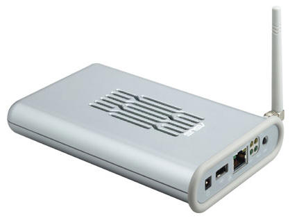 Asus przedstawił bardzo ciekawe urządzenie, które w skrócie można by nazwać bezprzewodowym dyskiem twardym jednak w praktyce to coś znacznie więcej. ASUS WL-HDD mieści w sobie dowolny dysk twardy 2,5" ATA100. Udostępnia jego zasoby w sieci poprzez sieciówkę 10/100Mbit i/lub sieć WLAN IEEE 802.11g 54Mbps. Przy okazji działa jako Acess Point dla takiej sieci. Dodatkowo posiada port USB 1.1, do którego wpina się flash dysk. Wszelkie dane znajdujące się na nim zostaną automatycznie przeniesione na dysk twardy. Asus WL-HDD posiada także własny zegar systemowy. Na obudowie znajduje się 6 diód: Power, HD access, Wireless Activity, USB copy finish i 2xLAN port.