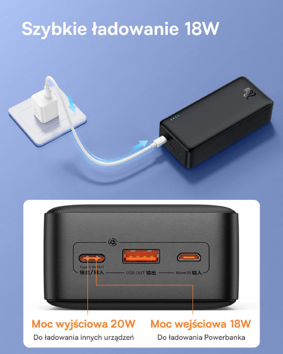Nowością na polskim rynku jest powerbank Baseus Airpow o pojemności 30000 mAh. Akumulator pozwala nawet na 6 naładowań smartfona z baterią o pojemności 4000 mAh. Model Airpow jest wyposażony w dwa porty – USB-C oraz USB-A i umożliwia ładowanie dwóch urządzeń jednocześnie. Jego moc 20 W oraz technologie Power Delivery i Quick Charge 3.0 pozwalają na szybkie ładowanie telefonów komórkowych i innych urządzeń elektronicznych, a także samego powerbanku o około 30% szybciej od standardowej ładowarki. Baseus Airpow wyposażony jest we wskaźnik LED, dzięki któremu możliwa jest weryfikacja poziomu naładowania urządzenia. Baseus Airpow 30000 mAh dostępny jest w kolorze czarnym w cenie około 180 PLN.