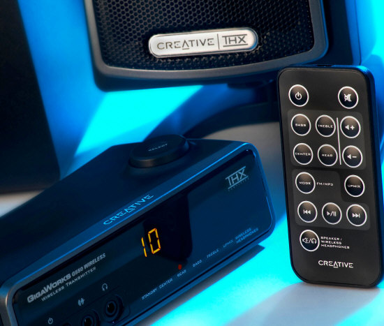 Firma Creative poinformowała o wprowadzeniu do oferty głośników GigaWorks™ G550W. W nowym zestawie 5.1 zastosowano zaawansowaną technologie pozwalającą na bezprzewodową komunikację z tylnymi głośnikami satelitarnymi w paśmie 2,4 GHz na odległość sześciu metrów. Znakomite brzmienie systemu potwierdza certyfikat THX. Oferuje taką samą moc i jakość dźwięku jak przewodowy model GigaWorks ProGamer G500, zapewniając bogaty i mocny dźwięk dookólny w grach, muzyce i filmach.