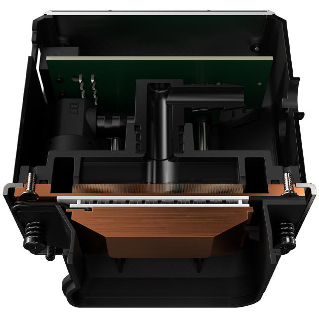 Przez radiator pompują powietrze trzy wentylatory SF120R o średnicy 120 mm, których żywotność jest szacowana na 160000 godzin. Śmigła wirują z prędkościami od 650 do 1900 obrotów na minutę, tłocząc do 100 m sześciennych powietrza na godzinę. Natężenie hałasu ma przy tym nie przekraczać 26 dBA, a więc poziomu szumów tła.