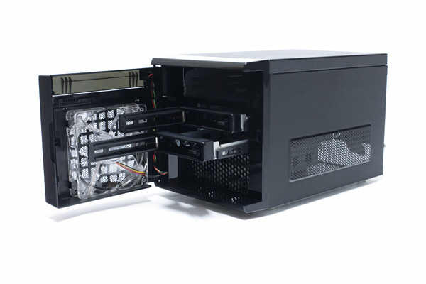 Niemiecka firma EOLIZE przygotowała coś, co może wprawić w zachwyt wszystkich miłośników budowy małego komputera (Barebone). Obudowa SVD-NC12-02 przygotowana została dla płyt głównych w formacie Mini-ITX, a patrząc od strony frontu, komputer nasz byłby niewiele większy od wentylatora 120mm, który został z przodu umieszczony, by za jednym zamachem chłodzić "tunelowo" cały komputer, w tym miejsce na stały dysk HDD/SSD oraz dwa dyski montowane (wsuwane) w technologii Hot Swap. Z tyłu wspomaga go drugi wentylator w rozmiarze 80mm. Całość o wymiarach 317 x 200 x 205mm (TxBxH), mieści w sobie jeszcze miejsce dla jednego napędu optycznego, wbudowany zasilacz SFX 300W i panel I/O z diodami HDD LED, Power LED, przycisk Power Switch, dwa porty USB2.0 i gniazda HD Audio. Mała obudowa, ale cena dość spora - 99 Euro.
