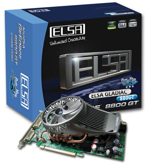 Teraz, kiedy ceny modelu GeForce 8800 GT opadły do w miarę normalnego poziomu, a ich ilość nasyciła już rynek, możemy zacząć wybrzydzać w dostępnych wersjach tego akceleratora. Prócz referencyjnych konstrukcji warto będzie zwrócić uwagę na dwie nowe karty oferowane przez firmy Club 3D i wracającej na rynek ELSA. Obie karty posiadają zmienione systemy chłodzenia, które mają zapewnić im niższe temperatury pracy. Produkt Club 3D proponuje nam aluminiowy, dwuczęściowy radiator uzbrojony w dwa ciepłowody HeatPipe, owiewany przez sporych rozmiarów, czerwony wentylator. Wydajniejsze chłodzenie może nam pomóc uzyskanie wyższych zegarów, zwłaszcza że producent proponuje nam tylko standardowe prędkości pracy GPU i 512 MB pamięci GDDR3 (GPU-600 MHz /SP-1500 MHz/ memory-1800 MHz). ELSA skorzystała z gotowego rozwiązania i zastosowała cooler firmy ZEROtherm, również oparty na technologii rur gazowych. Rozbudowany system pozwolił na fabryczny overclocking, tak więc zakupując ten model już na starcie otrzymujemy zegary 650 MHz dla GPU i 2000 MHz dla pamięci.