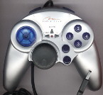 Jest on normalnym padem podłączanym do gameportu. Wyposażony został w 10 przycisków: 4 podstawowe + 2 zdublowane i jeszcze 4 dodatkowe, do których potrzebne są specjalne sterowniki z Internetu, niestety ich wersja przeznaczona jest tylko pod Windows 95/98. W związku z tym jego zgodność z innymi Windami z powodu driverów nie do końca zgadza się ze specyfikacją na opakowaniu, która zakłada kompatybilność z Win 95/98/ME/2000/XP. W sprawie tej również dzwoniłem do obsługi technicznej i potwierdzono, że wykorzystanie wszystkich przycisków jest możliwe tylko na systemach 95/98. Ale dlaczego nie zaznaczono tego w opisie?