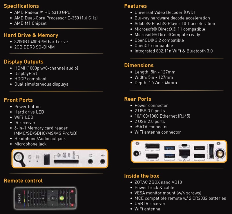 Niedawno testowaliśmy już komputer od Zotaca, oparty o architekturę AMD Zacate, a mianowicie model ZBOX AD02 Plus. Prezentowany tutaj model Nano, jak można się domyślić po nazwie, jest od niego znacznie mniejszy, choć opiera się o identyczne podzespoły.
