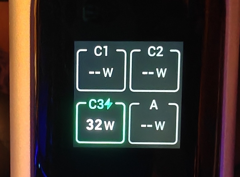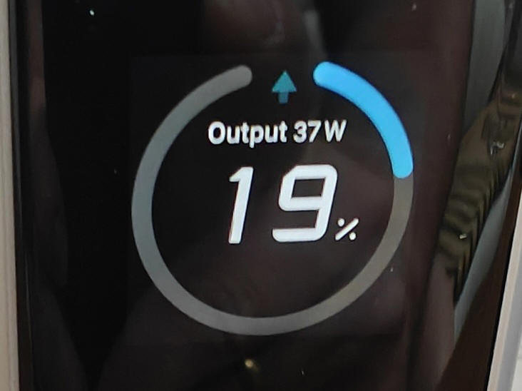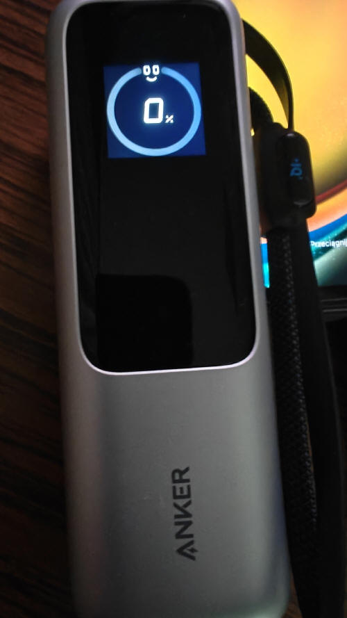 ANKER zapewnia nas, że produkt ten możemy szybko naładować za pomocą 100-watowych ładowarek. W czasie 20 minut mamy mieć możliwość "zassania" 30 procent całkowitej pojemności. Posiadam 100 watową ładowarkę od telefonu OnePLUS 12, więc niezwłocznie podłączyłem ją do pustego magazynu, ale wskazania na ekranie pokazały mi maksymalną moc ładowania na poziomie 33 Watów. Przy podpięciu źródła zasilania powerbank powita nas ładną animacją, po czym wskaże moc pobieraną z ładowarki i orientacyjny czas ładowania 3 godzin, 28 minut... Realny czas naładowania do 100% wyszedł w tym przypadku, dokładnie 3 godziny i 41 minut, a więc trochę dłużej. Pewnie było to wynikiem tego, że pod koniec ładowania system zaczął ograniczać jego moc. No cóż, ktoś tak sobie to po coś wymyślił.