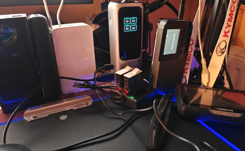 Nie mam niestety laptopa zasilanego portem USB-c, którego mógłbym użyć do mocniejszego obciążenia testowanego powerbanka, a jedyne maksymalne, łączne obciążenie, jakie udało mi się wygenerować z wszystkich czterech gniazd, sięgało okolic 40 watów, co rozgrzało baterię do 36 stopni Celsjusza. Na raz ciężko jest szybko rozładować taką "kostkę" energii i choć podpinałem do niego różne moje urządzenia akumulatorowe, jak zestawy słuchawek bezprzewodowych, baterie kamerki GoPro, uzupełniałem inne powerbanki, telefon, bezprzewodową klawiaturę, radio DAB, to trwało to dość długo.