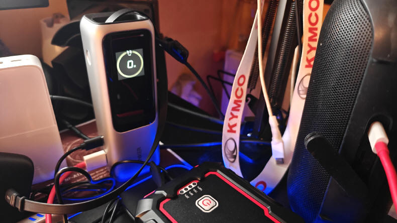 Wreszcie udało się zobaczyć na wyświetlaczu uśmiechniętą, ale głodną mordkę z okrągłym wskazaniem zero procent. Ponieważ było to pierwsze ładowanie, powtórzyłem cały cykl ponownego rozładowania, przyłączając do banku wszystko co popadło, by ponownie go doprowadzić jego stan do zera.