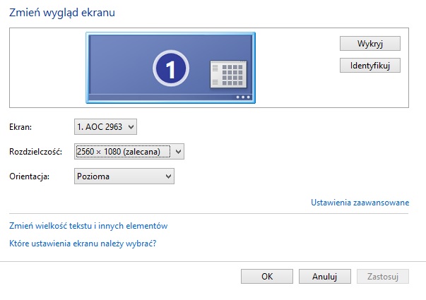 29-calowy AOC Q2963PM pracuje w rozdzielczości natywnej 2560 x 1080 punktów. Taki obraz naprawdę robi wrażenie, a miłośnicy ikonek na ekranie otrzymają na nie mnóstwo miejsca. Również korzystający z kafelków systemu Windows 8/8.1 nie będą mieli kłopotów z ich rozmieszczeniem.