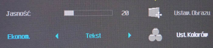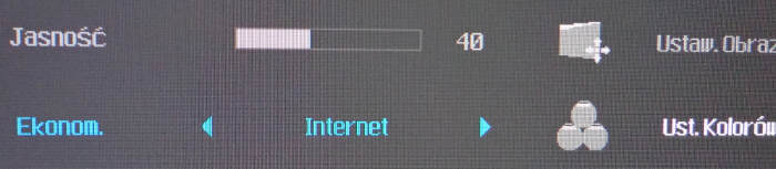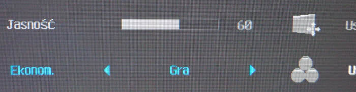 W trybie ustawień kolorów możemy skorzystać z gotowych ustawień fabrycznych przygotowanych dla poszczególnych zastosowań monitora. Ich nasycenie zmienia się również w parze z jasnością podświetlenia (co 20 punktów w skali ustawień).