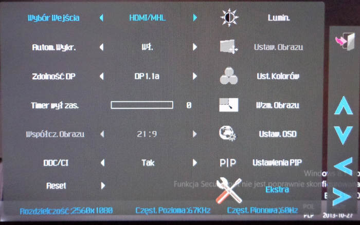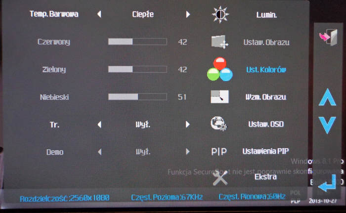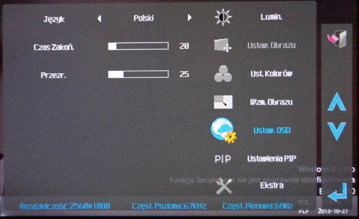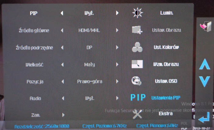 Dalsze okna Menu pozwolą nam zapanować nad ustawieniami wyświetlanego obrazu. W modelu AOC Q2963PM otrzymamy również obsługę technologii PIP, czyli obrazu w obrazie, co przy takiej powierzchni roboczej nie może dziwić.