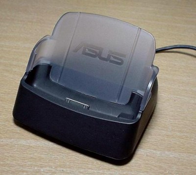 Stację dokującę podłączaną do komputera za pośrednictwem łącza USB. Istnieje także możliwość podłączenia zasilania z zasilacza, który także został dostarczony wraz z opakowaniem i całą resztą :). Za pośrednictwem tej podstawki palmtop będzie w stanie łączyć się z Internetem oraz wymieniać dane z komputerem stacjonarnym. Możliwości zastosowania jest wiele.