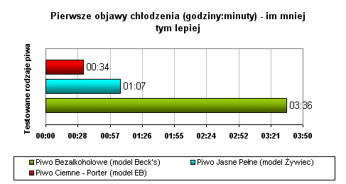 Najgorszy rezultat uzyskało piwo bezalkoholowe - oczywiście. Po tym teście zdecydowanie możemy porzucić myśli o zakupie tego jakże nieudanego produktu chłodzącego, z pewnością zawiedziemy się gdy zamiast efektów przyjdzie nam czekać trzy godziny (przypominam również, że po takim czasie zużycie tego modelu znacznie wzrośnie, a rezultaty będą kiepskie).