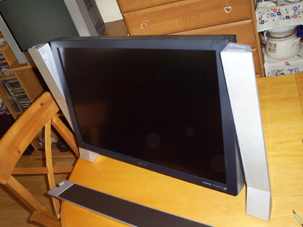 Sama konstrukcja stojaka,, przypominająca nieco spłaszczoną literę U, nie jest sama w sobie zwartą konstrukcją. Producent przewidział ten problem i wyposażył swój monitor w specjalną półkę, która prócz usztywnienia całości konstrukcji, spełnia również funkcje użytkowe. Na szczycie pionowych słupków stojaka znajdują się specjalne wycięcia, zamknięte ruchomymi elementami. Wystarczy wcisnąć ów element, by ten z lekkim oporem sprężyny schował się w głąb słupka. W spodzie półki mamy specjalnie profilowane występy, które właśnie umieszczamy w tych specyficznych wycięciach. Ich kształt nie pozwala na odwrotne założenie półki.