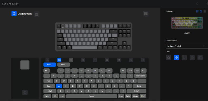 Za pomocą tego programu możemy sterować zarówno klawiaturą, jak i myszami od DARK PROJECT. Całość jest dość intuicyjna i w zasadzie nie przeszkadza brak języka polskiego.