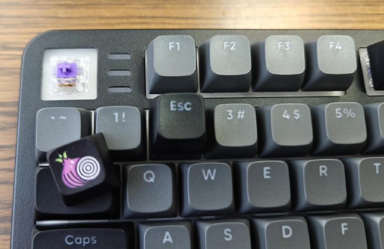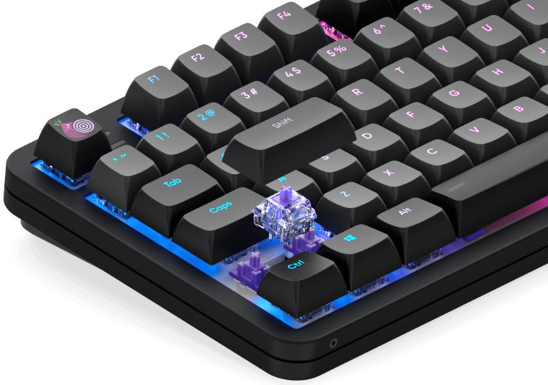 Całość świeci bardzo fajnie. To również zasługa Ziemniaka, który wziął do serca opinie użytkowników pierwszej generacji ONIONITE, którzy sygnalizowali właśnie zbyt blade świecenie poprzednich switch’y. Zmieniono zatem materiał obudowy na całkowicie przejrzysty, który znacznie lepiej rozprowadził światło z LED’ów ukrytych pod switch’ami.