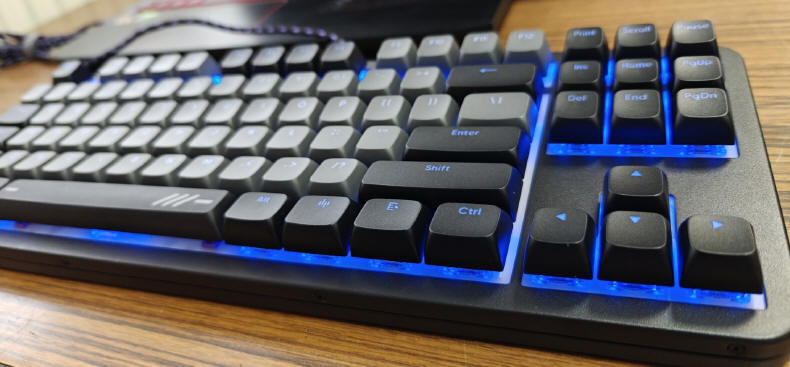 Bardzo fajnym pomysłem jest system wymiennych przełączników, bo nie dość, że możemy w szybki i łatwy sposób naprawić swoją klawiaturę, gdyby któryś z najczęściej używanych klawiszy WSAD, z czasem zatracił swoje właściwości i precyzję działania. Mi osobiście przytrafiło się to w dwóch produktach i to wcale nie tanich, bo Ozone StrikeBattle i Cooler Master CK550, które pozostawiłem sobie po testach i miałem je okazje używać dłużej. W Ozone zaskoczyła mnie sytuacja w "Czołgach" (WoT), kiedy nagle podczas rozgrywki po strzale, chciałem wycofać czołg za wzniesienie, by osłonić się od kontr-ognia, a tu Zonk... Maszyna stoi z zbiera pocisk za pociskiem. Dopiero intensywne walenie w klawisz wycofało ją, ale z poziomu "życia" zostały strzępy. Problem powtarzał się, więc model ten zastąpiłem innym ze swoich zapasów, bo w nim nie było możliwości wymiany przełączników, więc trzeba by było rozbierać całość i zamiennie przelutować switch’e z innego, mniej używanego rejonu. Tutaj możemy korzystać z szerokiej palety mechanicznych przycisków, mieszając ich kolory (właściwości czasu i wysokości kontaktu, siły nacisku), w systemach o trzech lub pięciu pinach.