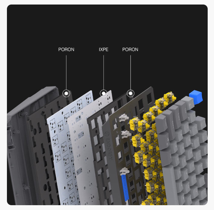 Genesis w miejscu, gdzie ENDORFY umieścił spore diody NUM/CAPS/SCROLL, zdublował dodatkowe klawisze do łatwiejszej obsługi funkcji odtwarzaczy Audio/Video (Play/Pause/Przewijanie). Co lepsze, to już sami możecie sobie wybrać. Kadłubek i jego spasowanie, jest naprawdę dobrze wykonane, a użyty plastik wzbudza zaufanie. Konstrukcja jest bardzo stabilna i sztywna, a wszystko to przez wielowarstwową budowę klawiatury dla wyciszenia jej pracy (trzy warstwy pianki akustycznej – dwie PORON i jedna IXPE), wzmocnioną aluminiowym topem.