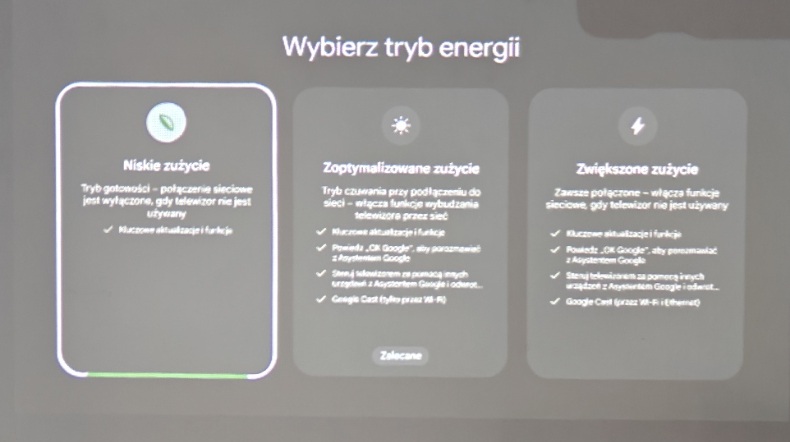 Aby cieszyć się oglądaniem filmów w dużym formacie, wpierw trzeba się trochę nagimnastykować z przejściem fazy rejestracji i wstępnego ustawienia projektora. Niestety nie można tego ominąć i trzeba podać trochę danych o sobie rejestrując się przez nasze konto Google. W zamian dostajemy wszystkie opcje i aplikacje, z których korzystamy na co